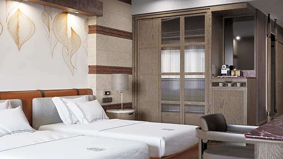 Deluxe Room Twin Bed is 377 square feet and includes 2 single beds 80-130 width plus tea and coffee making facilities and bathrobes and is Wheelchair-accessible.
