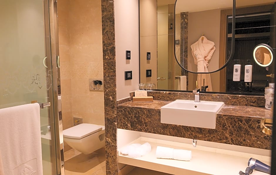 Selcuk Suite is 592 square feet and includes a queen-size bed 150-154 width plus tea and coffee making facilities and bathrobes and is Wheelchair-accessible.