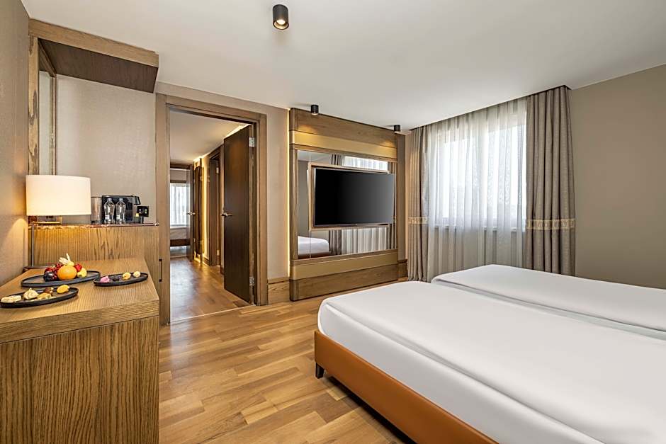 The air-conditioned suite has 2 bedrooms and 1 bathroom with a bath and a shower. The suite offers soundproof walls, a mini-bar, a tea and coffee maker, as well as a balcony. The unit has 3 beds.
